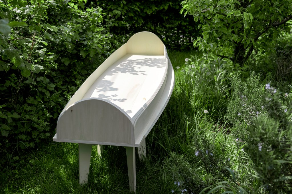 Deze rubriek had u wellicht niet verwacht. Een ongewone kist voor een buitengewone gebeurtenis. Deze uitvaartkist ontwikkelde ik in opdracht van een begrafenisonderneming die persoonlijk afscheid verzorgt in de warmte van een thuisopbaring. Iets wat nog niet zo lang geleden de gewoonste zaak van de wereld was.
